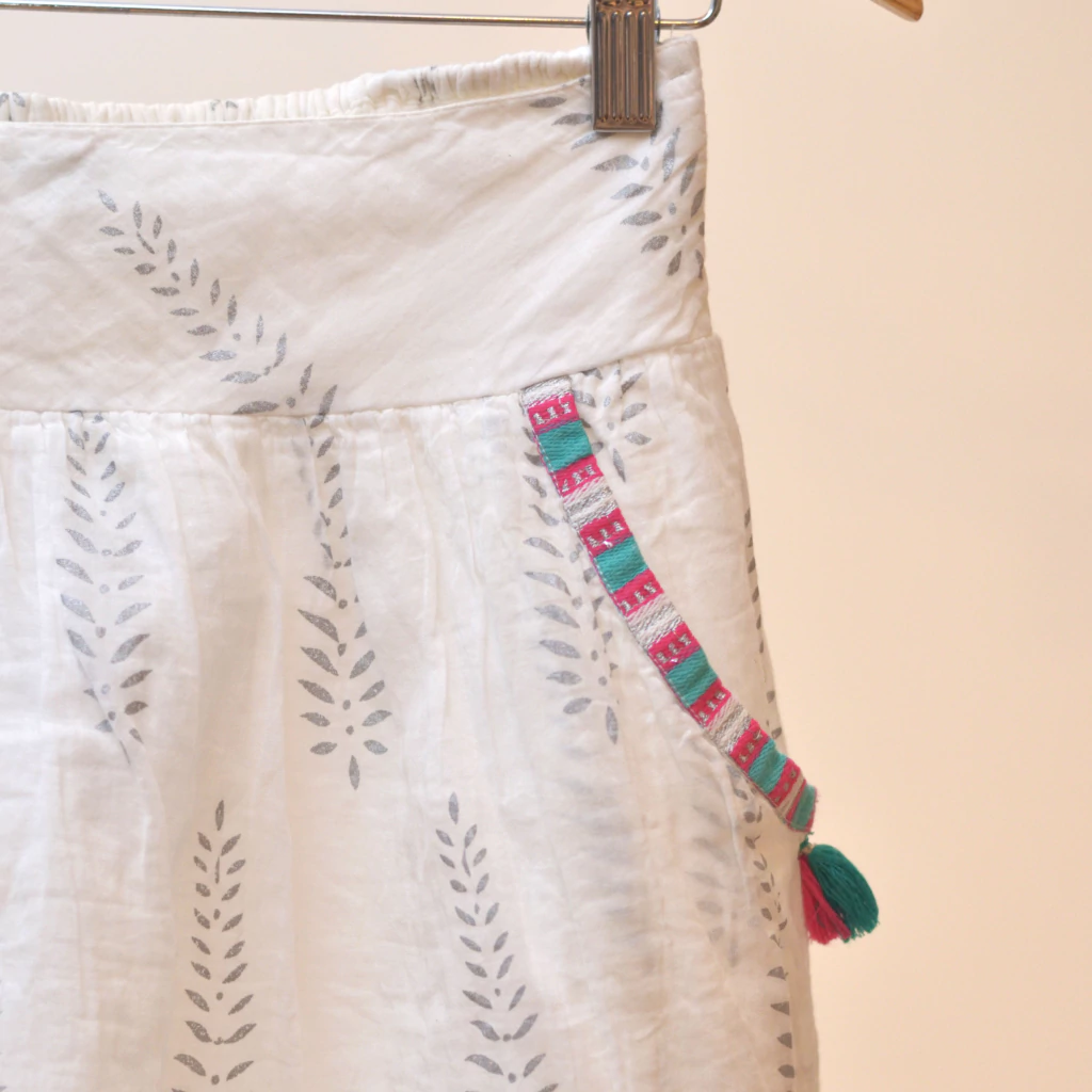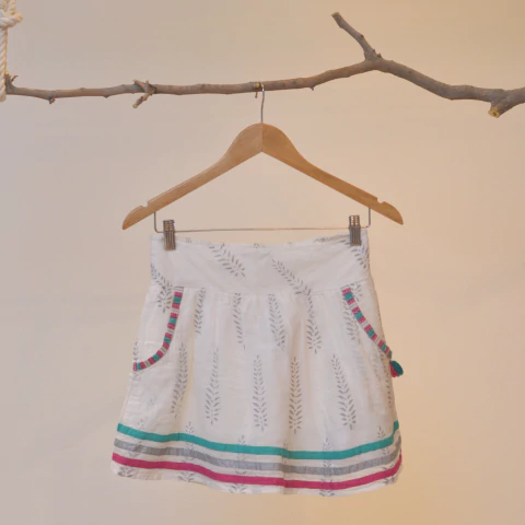 Falda blanca con detalles en verde, gris y fucsia00084-A0711