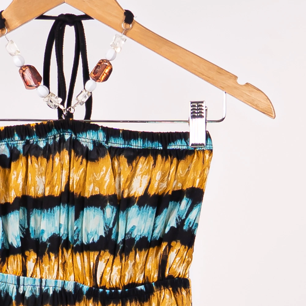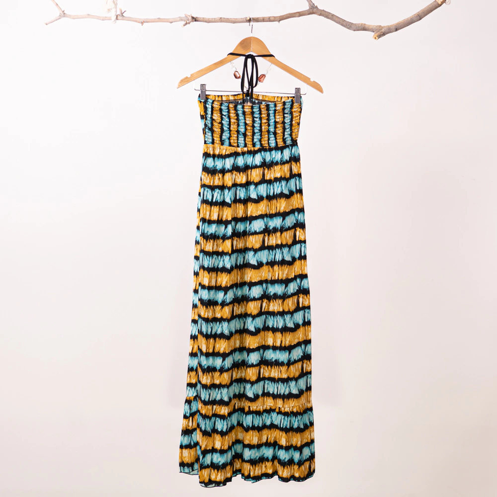 Vestido batik azul, negro y marrOn con prendidura de piedras00192-A1507